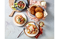 While the pies are cooking, combine the salsa ingredients with a pinch of salt and pepper. Serve the pies with the salsa and a dollop of sour cream.
